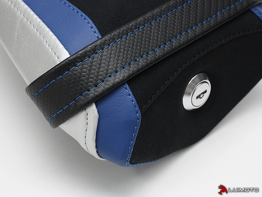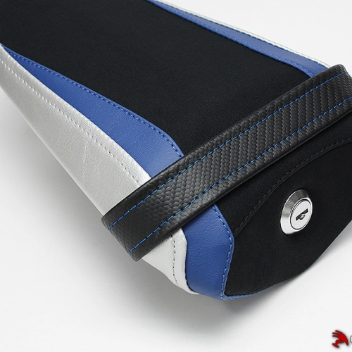 Copri sella Yamaha R6 17-18 Coutures noires Luimoto di alta qualità, prodotto in Canada. Il marchio disegna prodotti con una finitura superba: ricami dettagliati, vinile blu, tessuto stile carbonio o pelle scamosciata di alta qualità... Il design e i colori sono personalizzati per abbinare il look della tua moto.