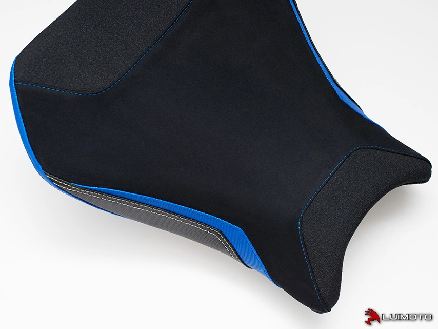 Copri sella Suzuki GSXR 1000 17-18 Noir et Coutures Bleues Luimoto di alta qualità, prodotto in Canada. Il marchio disegna prodotti con una finitura superba: ricami dettagliati, vinile blu, tessuto stile carbonio o pelle scamosciata di alta qualità... Il design e i colori sono personalizzati per abbinare il look della tua moto.