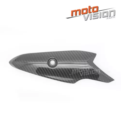 Protector colector escape en carbono Kawasaki Z900 2017-2021 da montare direttamente sui punti di fissaggio originali della moto per sostituire la carenatura originale. Le parti in carbonio vengono fornite senza viti e bulloni.