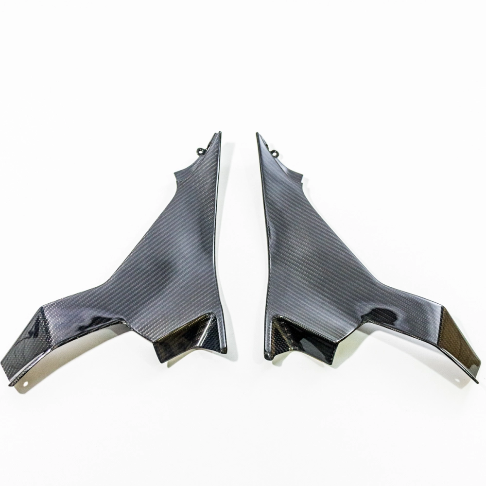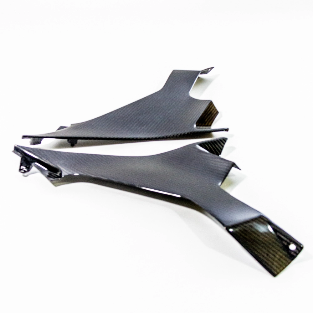 Protezione laterale sotto serbatoio carbonio luminoso Kawasaki Ninja 400 2019 consegnato senza viti o altri fissaggi. I fori sono già praticati sulle carenature per moto in carbonio. I pezzi sono disponibili con vernice lucida o opaca.