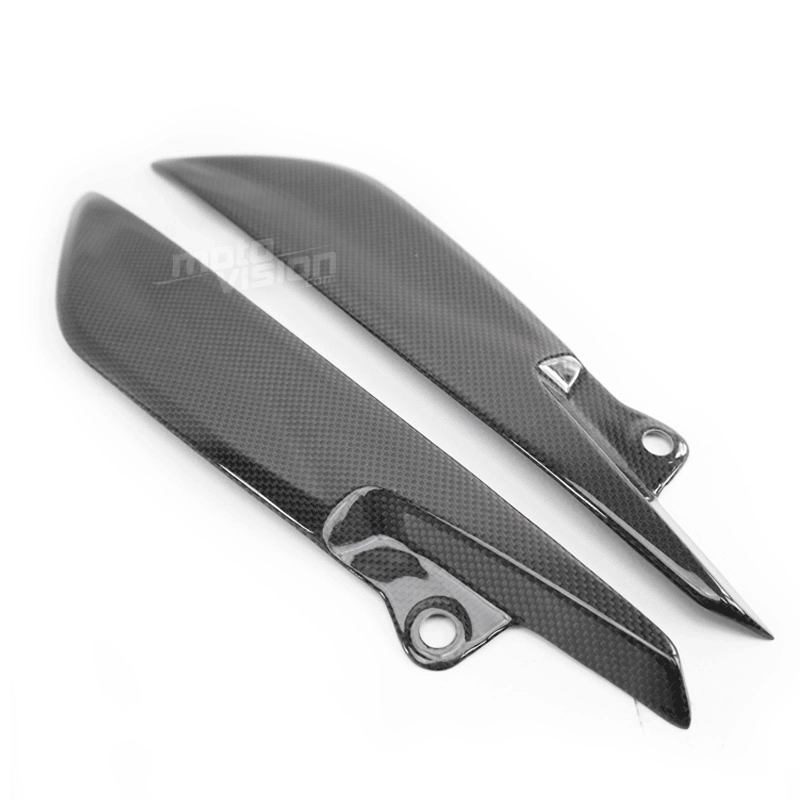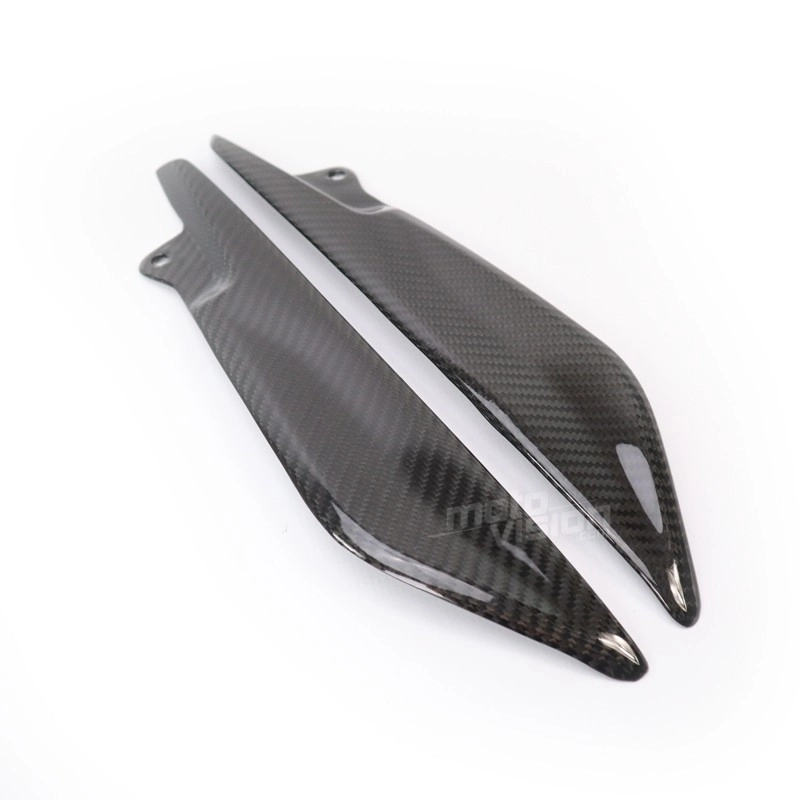 Carenados laterales carbono Triumph Speed Triple 2016-2020 da montare direttamente sui punti di fissaggio originali della moto per sostituire la carenatura originale. Le parti in carbonio vengono fornite senza viti e bulloni.
