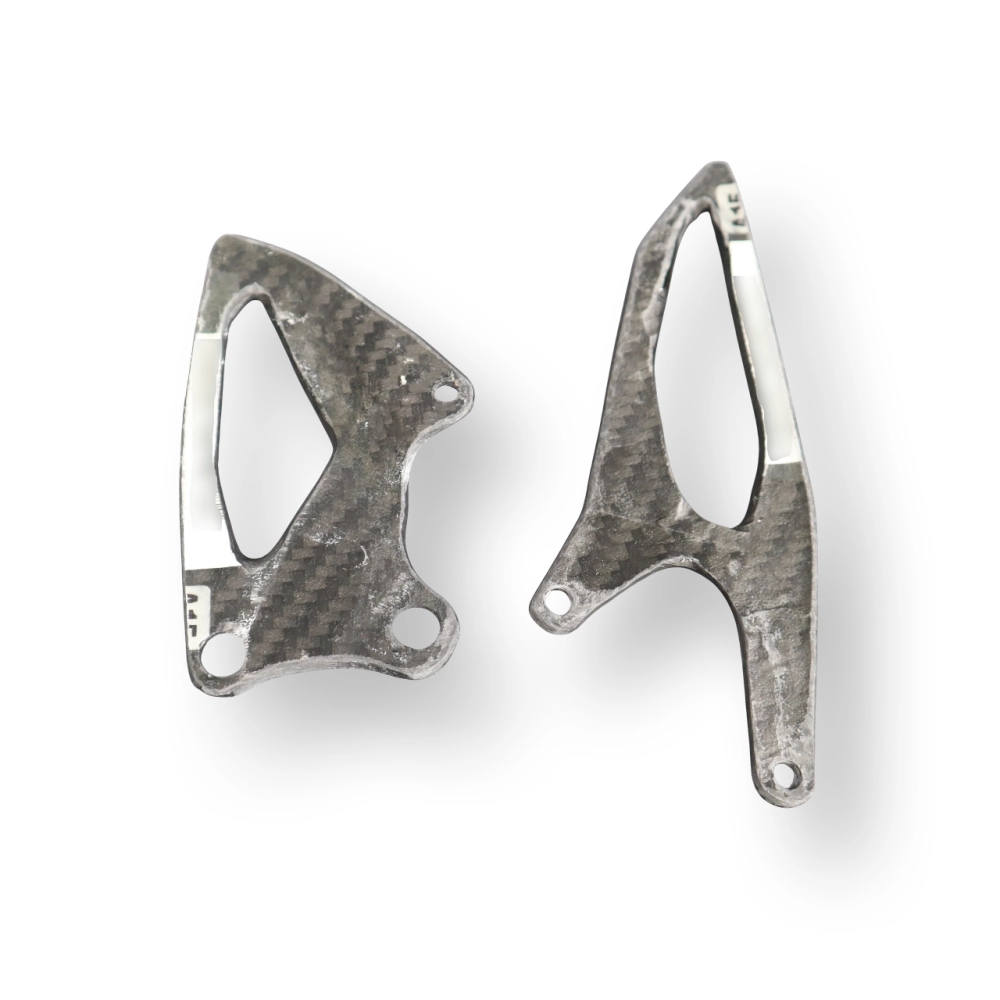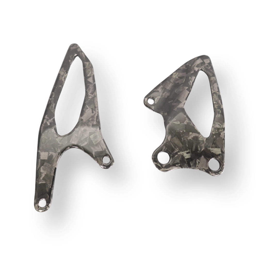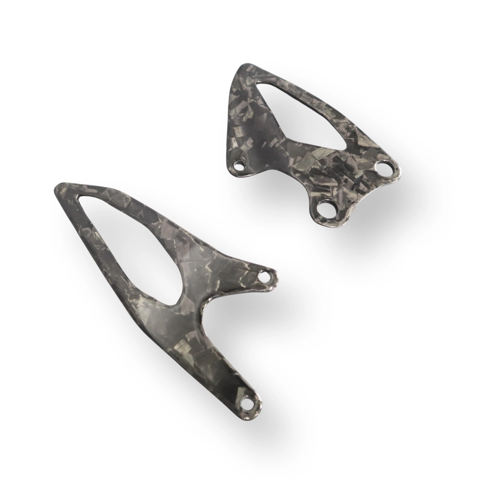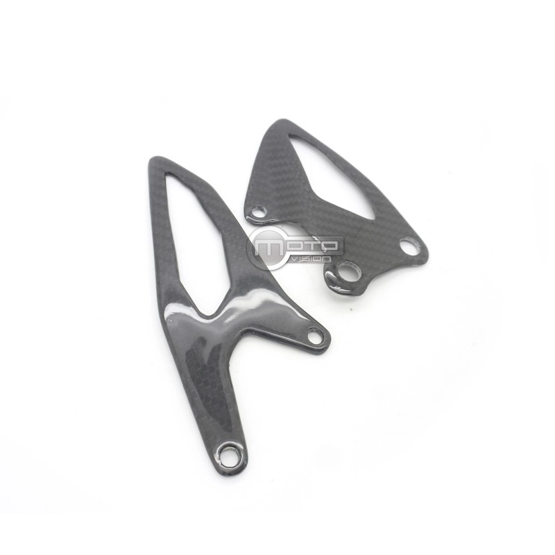 Paratacchi pedane Carbone Yamaha R1 2015-... consegnato senza viti o altri fissaggi. I fori sono già praticati sulle carenature per moto in carbonio. I pezzi sono disponibili con vernice lucida o opaca.