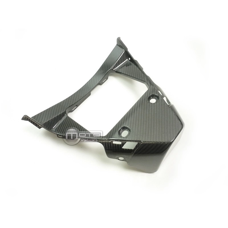 V Panel frontal protector en carbono Yamaha R1 2015-... da montare direttamente sui punti di fissaggio originali della moto per sostituire la carenatura originale. Le parti in carbonio vengono fornite senza viti e bulloni.