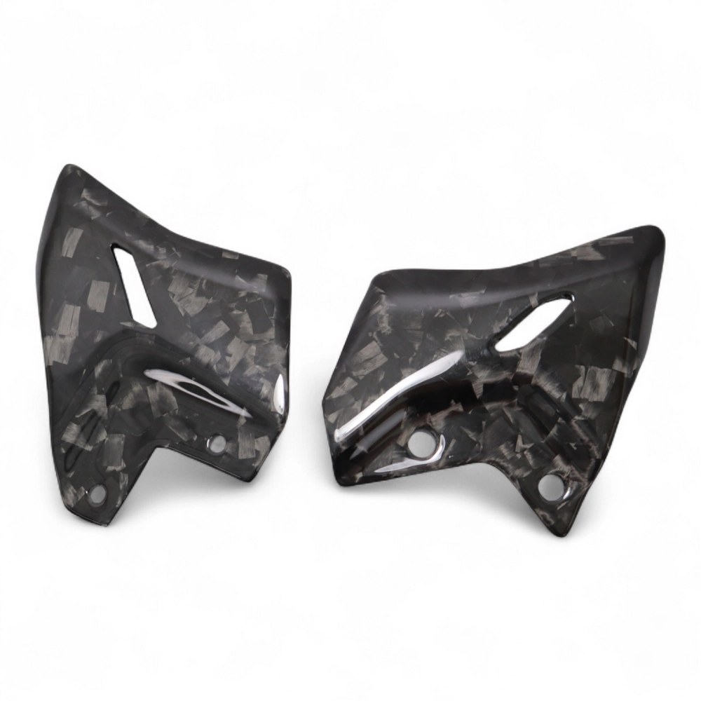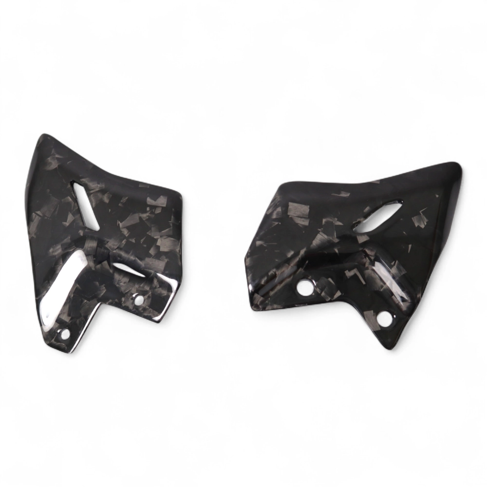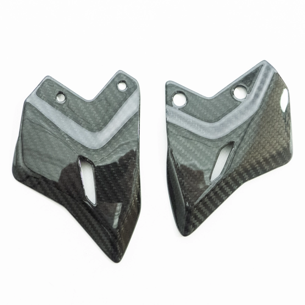 Paratacchi pedane Carbone Kawasaki Z650 2017- consegnato senza viti o altri fissaggi. I fori sono già praticati sulle carenature per moto in carbonio. I pezzi sono disponibili con vernice lucida o opaca.
