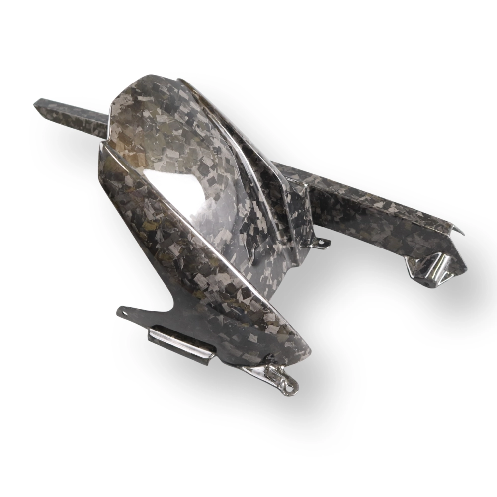 Parafango posteriore con Paraspruzzi carbon BMW S1000RR 2019- S1000R 2021- M1000R 2023- M1000RR 2023- da montare direttamente sui punti di fissaggio originali della moto per sostituire la carenatura originale. Le parti in carbonio vengono fornite senza viti e bulloni.