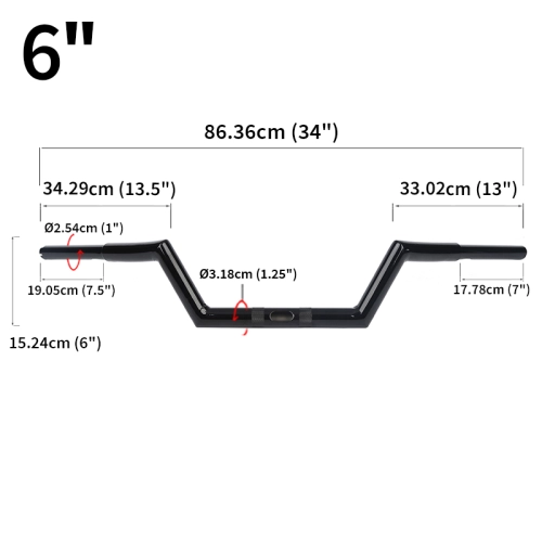 Manubrio Mustache 1" 1/4 nero 6" Harley Davidson Road Glide King / FLTR / FLHR - 2015-2016