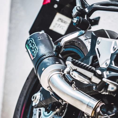 GPR ha sviluppato M3 Black Titanium dopo le vittorie nel Campionato del Mondo Moto3. Ha una griglia da corsa rimovibile e un corpo in titanio nero con fondi lavorati a CNC. La sua forma rotonda ha un diametro di 100MM.Questo kit comprende il tubo lnik specifico o il semicollettore con staffe e accessori specifici adeguati. Ciò consente l'installazione senza alcuna modifica strutturale. Si tratta di un prodotto GPR originale, sviluppato dopo l'esperienza GPR nel Campionato del Mondo. Offre un design innovativo, prestazioni migliorate, risparmio di peso e un suono corposo. Peso: 1,06 Kg