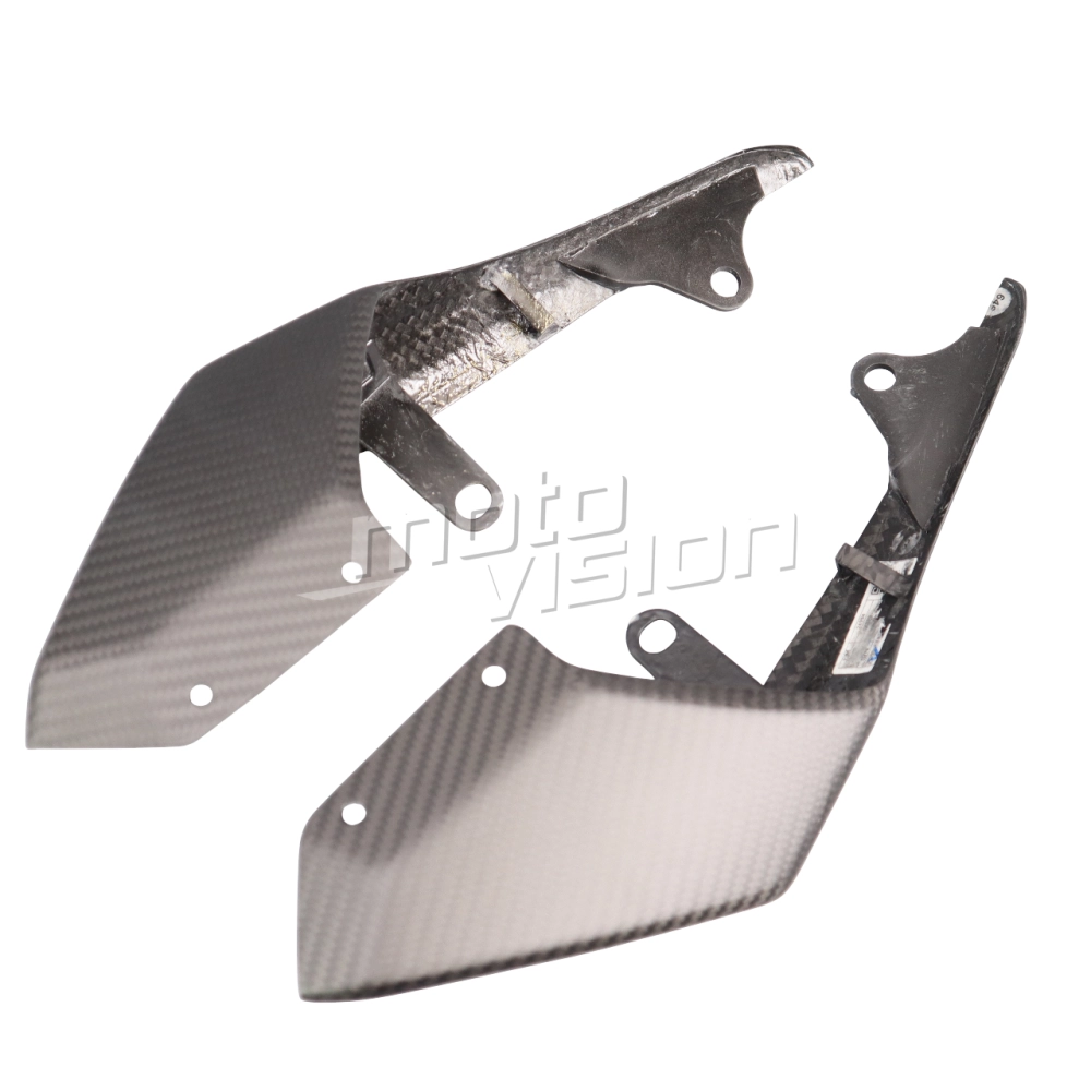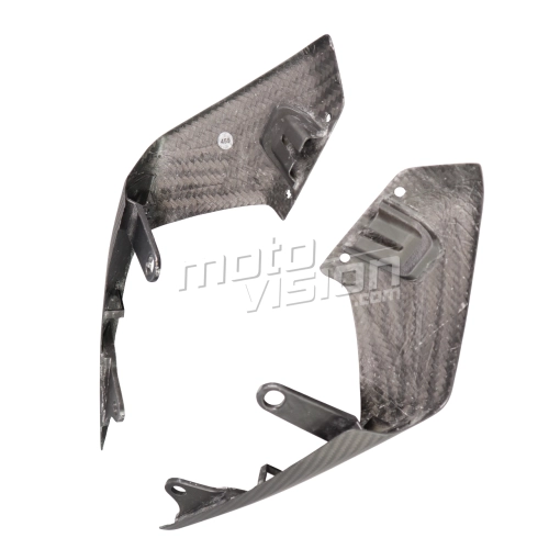 Canali aria per sella Carbone Yamaha MT07 2018-2022 consegnato senza viti o altri fissaggi. I fori sono già praticati sulle carenature per moto in carbonio. I pezzi sono disponibili con vernice lucida o opaca.