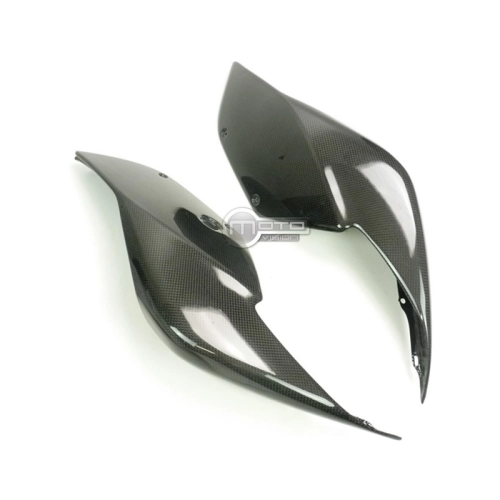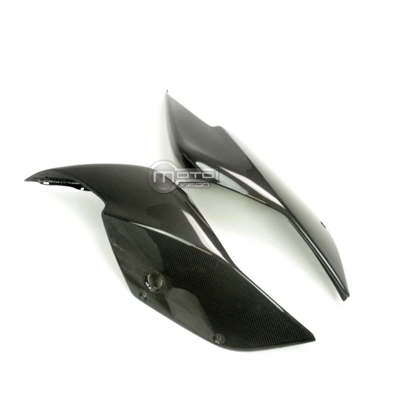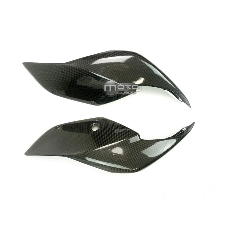 Tapas laterales bajo asiento en carbono Ducati 1299 Panigale da montare direttamente sui punti di fissaggio originali della moto per sostituire la carenatura originale. Le parti in carbonio vengono fornite senza viti e bulloni.