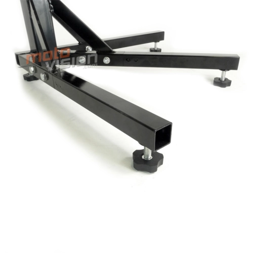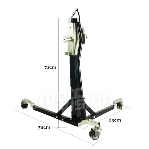 Il cavalletto centrale Moto Vision è adatto a sollevare entrambe le ruote fino a 15 cm dal telaio. È adatto a modelli di veicoli fino a 300 kg - 661 lbs. La prima volta che lo si installa è necessario prestare attenzione alla regolazione del supporto, i successivi utilizzi saranno facili e veloci.