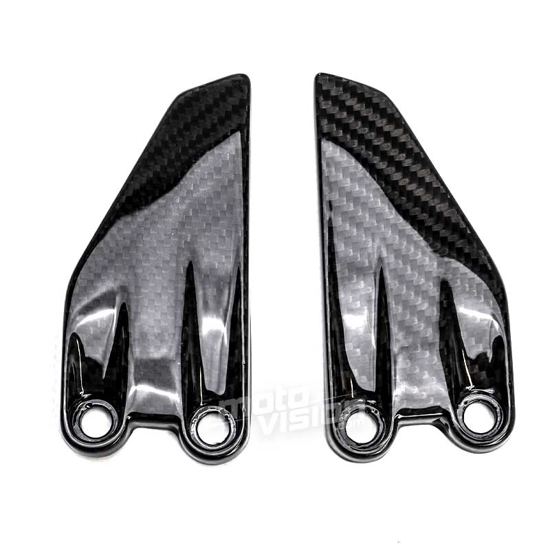 Reposapiés carbono para KTM Duke 390 da montare direttamente sui punti di fissaggio originali della moto per sostituire la carenatura originale. Le parti in carbonio vengono fornite senza viti e bulloni.