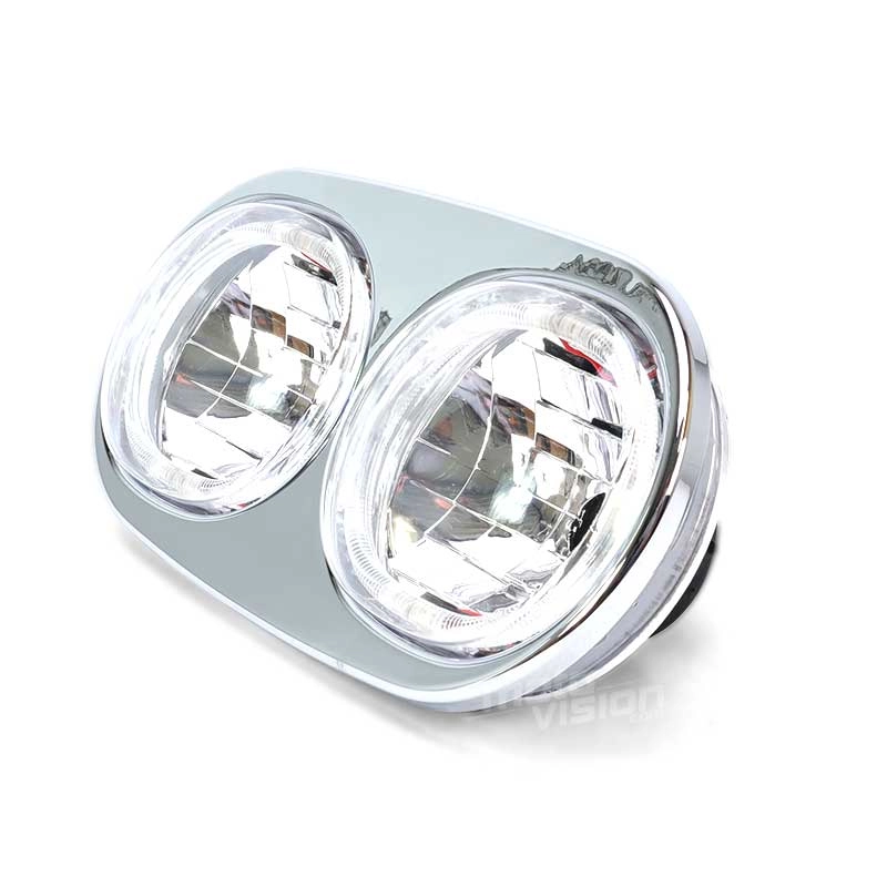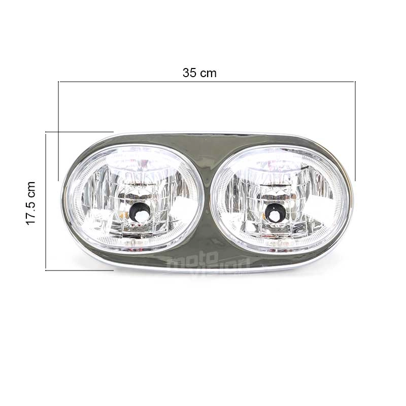 Faro originale Harley Davidson Road Glide 1998-2013, ideale per sostituire il vostro faro graffiato o danneggiato. Caratterizzato da una splendida finitura, questo faro anteriore Moto Vision riprende il design e la posizione del faro originale della vostra moto. Il fanale non richiede alcuna modifica per il montaggio sulla moto.