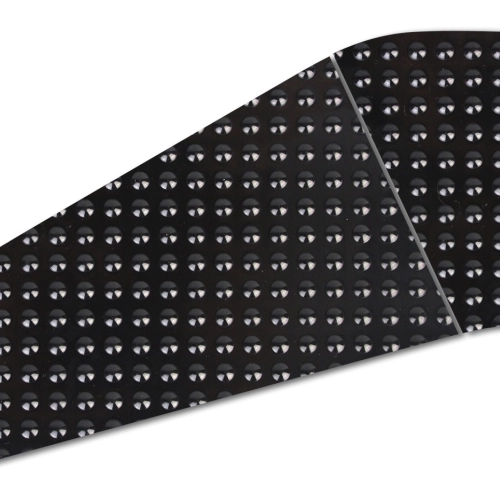 Il grip da serbatoio può essere incollato su qualsiasi superficie (ruvida o verniciata, in metallo o in plastica), inoltre è completamente trasparente (per la versione trasparente) in modo che la vernice sia visibile al 100%.