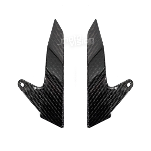 Paneles faros carbono brillo Yamaha MT09 2017-2020 da montare direttamente sui punti di fissaggio originali della moto per sostituire la carenatura originale. Le parti in carbonio vengono fornite senza viti e bulloni.
