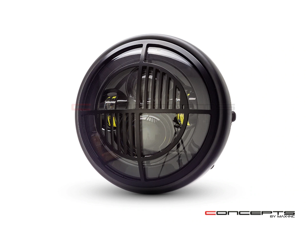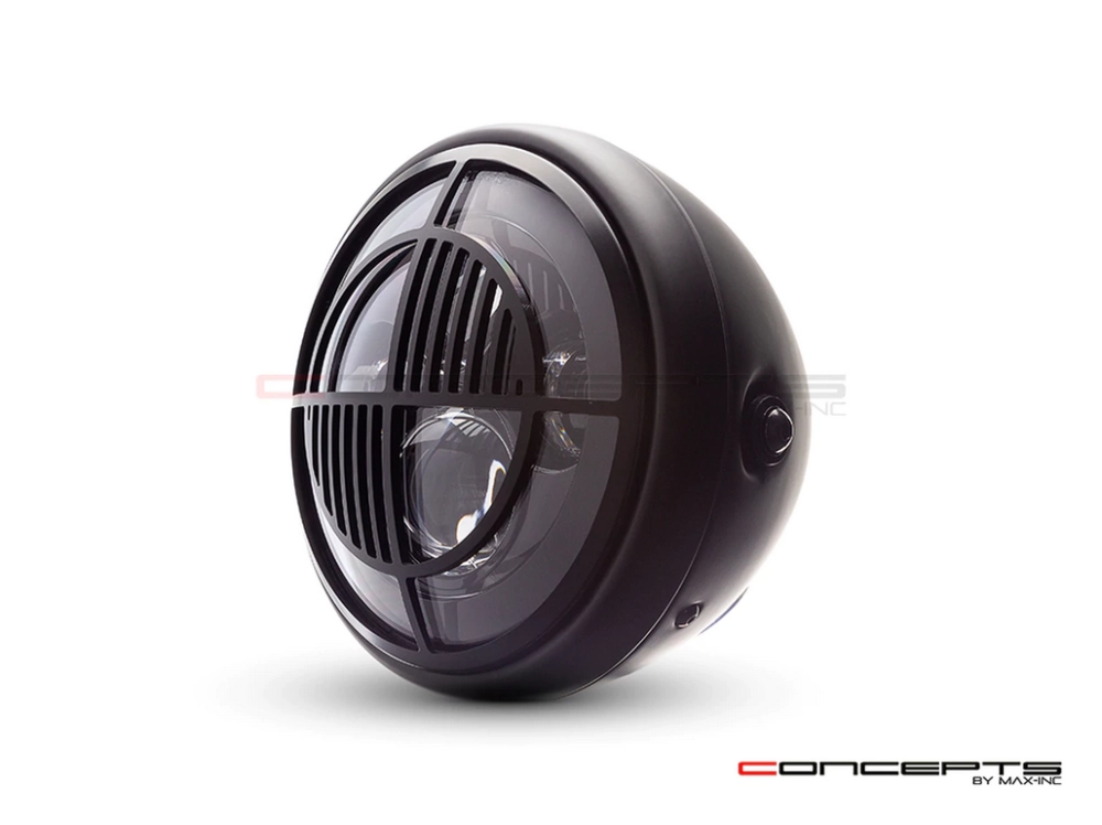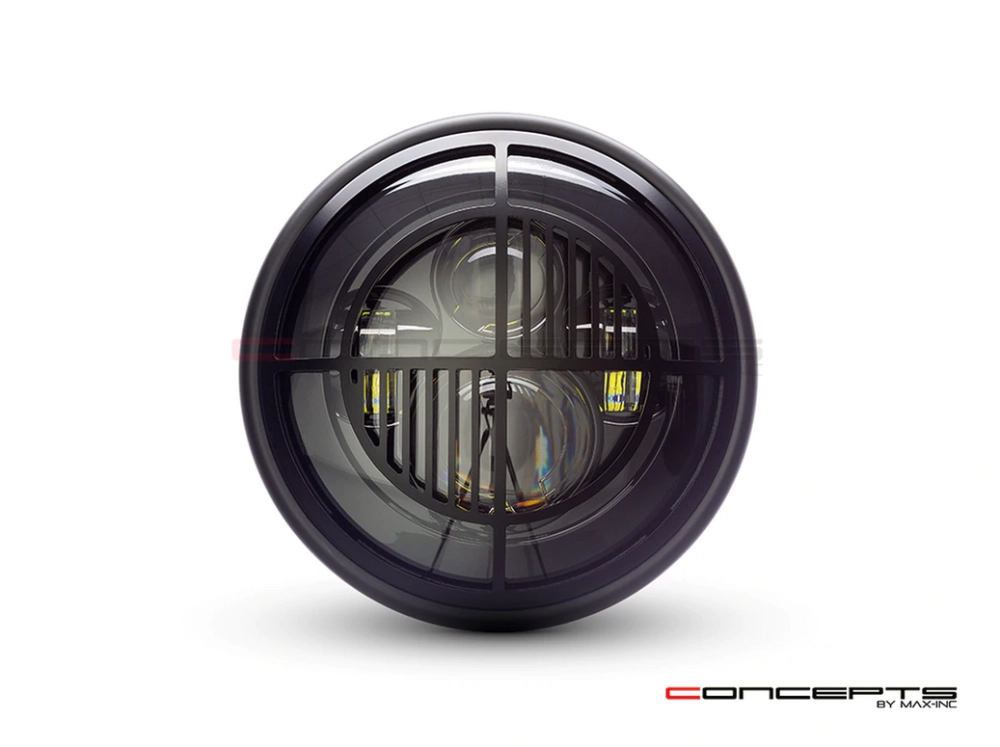 Faro anteriore di alta qualità e super luminoso in stile classico con montaggio laterale, inserto LED multi-proiettore e copertura in lega Tri-Deco Grill lavorata a CNC. Questo faro si adatta ad acquirenti esigenti che cercano un prodotto di qualità.