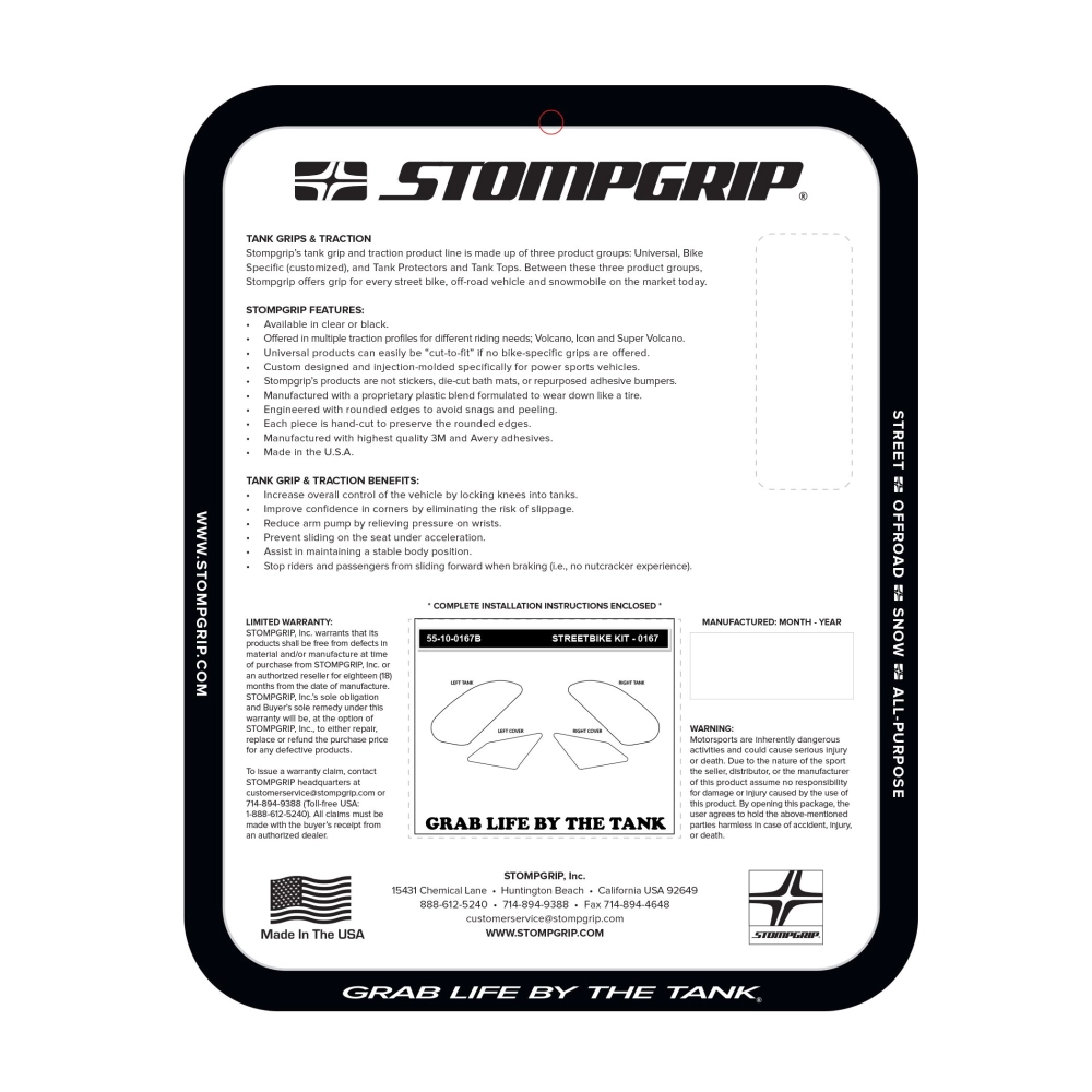 I cuscinetti di trazione Stomp Grip sono sviluppati individualmente per ogni motocicletta. Se non disponiamo di uno Strip Grip Pad adatto alla tua specifica applicazione, perché non usare i nostri pad Universal o tagliarli quando ne hai bisogno.