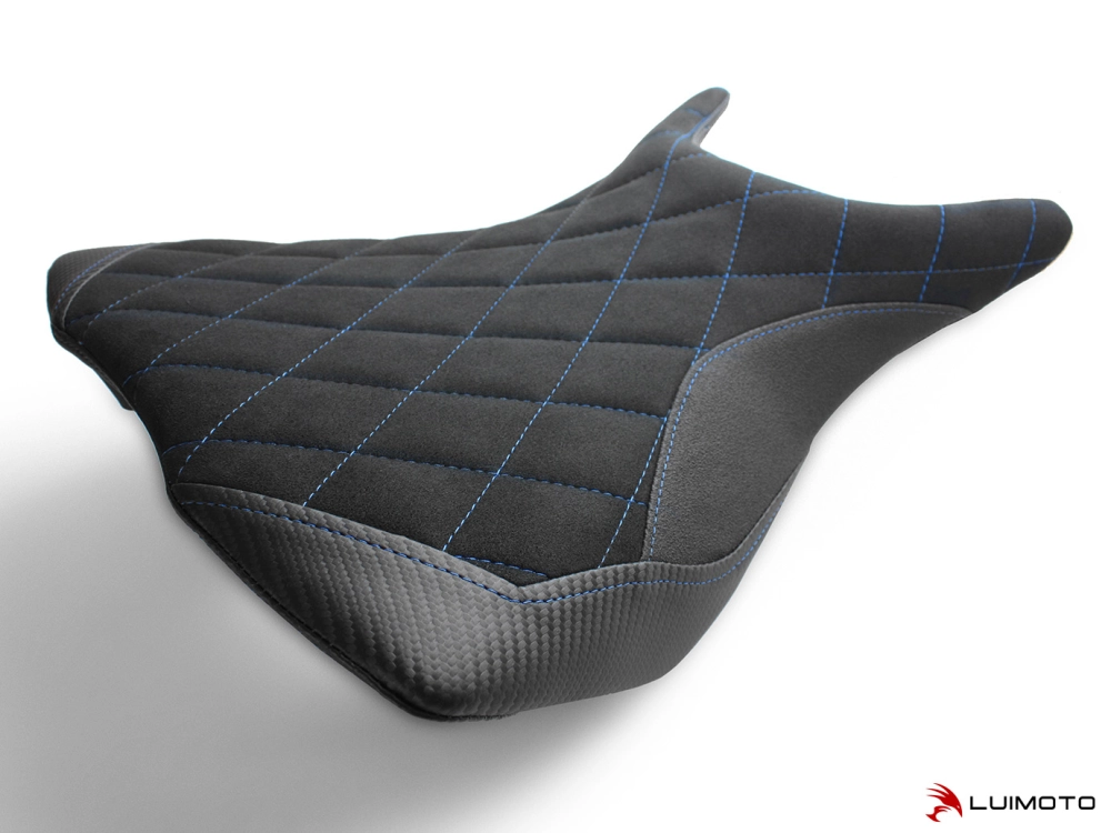 Copri sella Yamaha R3 MT03 R25 Luimoto di alta qualità, prodotto in Canada. Il marchio disegna prodotti con una finitura superba: ricami dettagliati, vinile blu, tessuto stile carbonio o pelle scamosciata di alta qualità... Il design e i colori sono personalizzati per abbinare il look della tua moto.