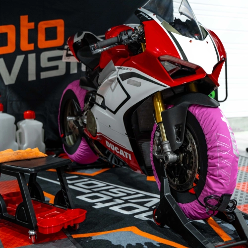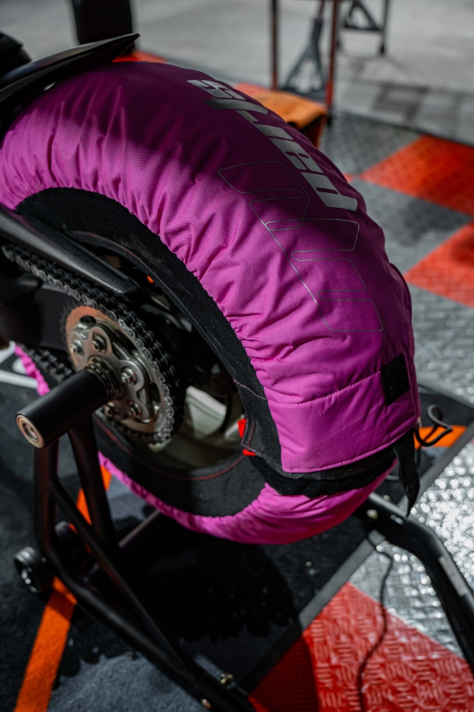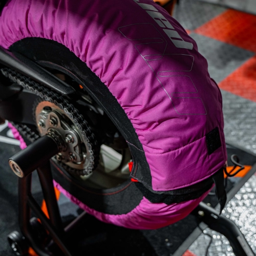 Coppia di coperte riscaldate con controllo automatico della temperatura fino a 80°C. Questo modello MV Parts è facile da montare e aderisce perfettamente al pneumatico per un contatto ottimale.