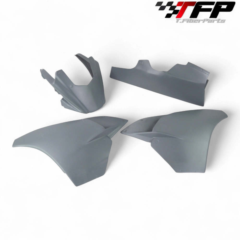 Carenatura anteriore in poliestere TFP KTM RC390 che richiede regolazioni e preparazione avanzata della base per una buona finitura.