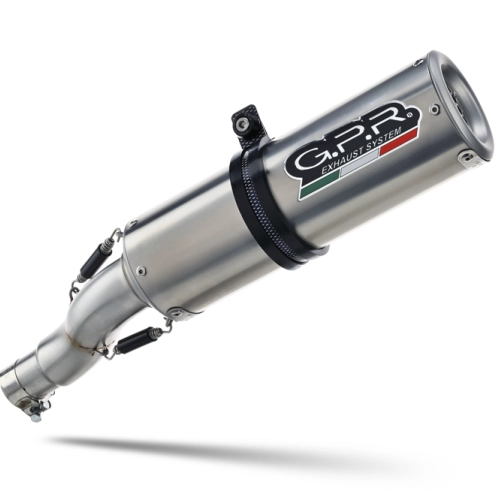 GPR ha sviluppato M3 Inox dopo le vittorie nel Campionato del Mondo Moto3. Ha una griglia da corsa rimovibile e fondi lavorati a CNC. Ha un corpo in acciaio inox spazzolato a mano, e una forma rotonda con un diametro di 100MM. Questo kit comprende il tubo lnik specifico o il semicollettore con staffe e accessori specifici adeguati. Ciò consente l'installazione senza alcuna modifica strutturale. Si tratta di un prodotto GPR originale, sviluppato dopo l'esperienza GPR nel Campionato del Mondo. Offre un design innovativo, prestazioni migliorate, risparmio di peso e un suono corposo. Peso: 1,58 Kg