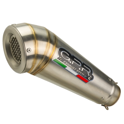 Gli scarichi Powercone Evo di GPR provengono direttamente dalle gare con un design super sportivo aspetto e forma conica. Sono realizzati in acciaio inox 304 spazzolato a mano, con saldature TIG a vista sul cono. La loro forma conica ha un diametro di 70MM x 110MM. Questo kit comprende il raccordo (tubo di collegamento) e il suo catalizzatore specifico con le relative staffe e accessori. Ciò consente l'installazione senza alcuna modifica strutturale. Si tratta di un prodotto GPR originale, sviluppato dopo l'esperienza GPR nel Campionato del Mondo. Offre un design innovativo, prestazioni migliorate, risparmio di peso e un suono corposo. Peso: 1,95 Kg