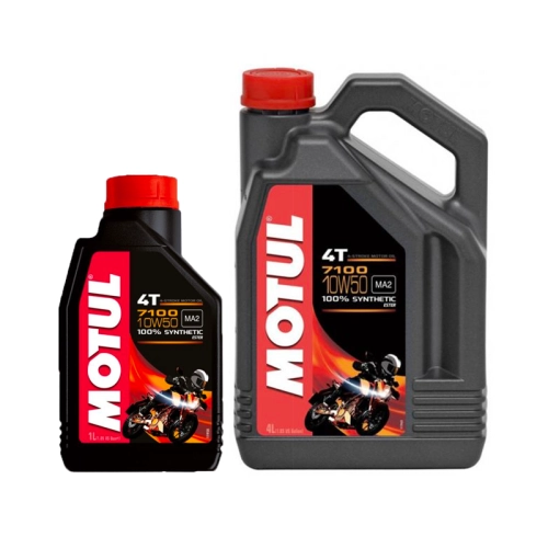Utilizzate Motul 7100 10W50 4L + 1L GRATIS per le vostre moto da strada, moto da trail, moto da fuoristrada, enduro, trial... dotate di motori a 4 tempi con cambio integrato o no, e frizione a bagno d'olio o a secco, motori che rispettano le norme antinquinamento Euro 2, 3, 4 o 5, dotati di sistemi di post-trattamento dei gas di scarico: catalizzatori, iniezione d'aria allo scarico ...