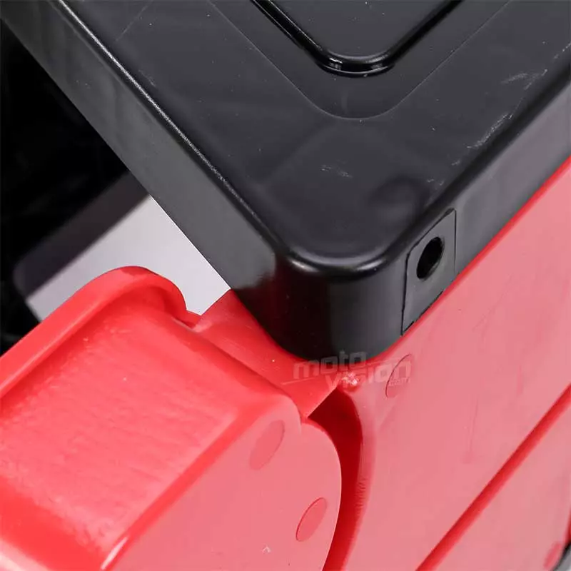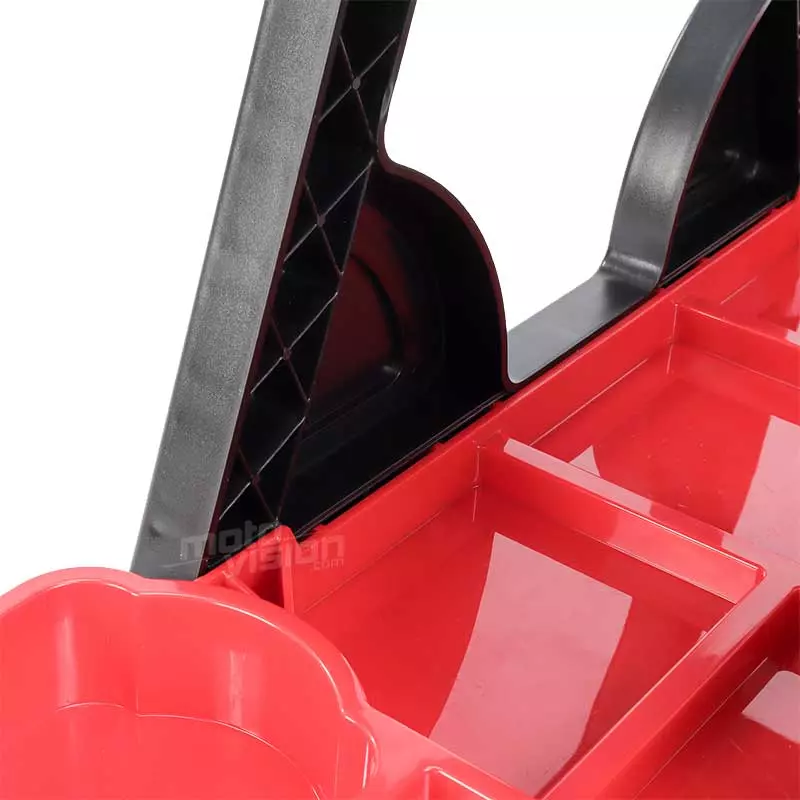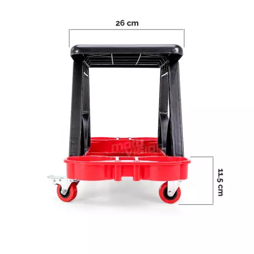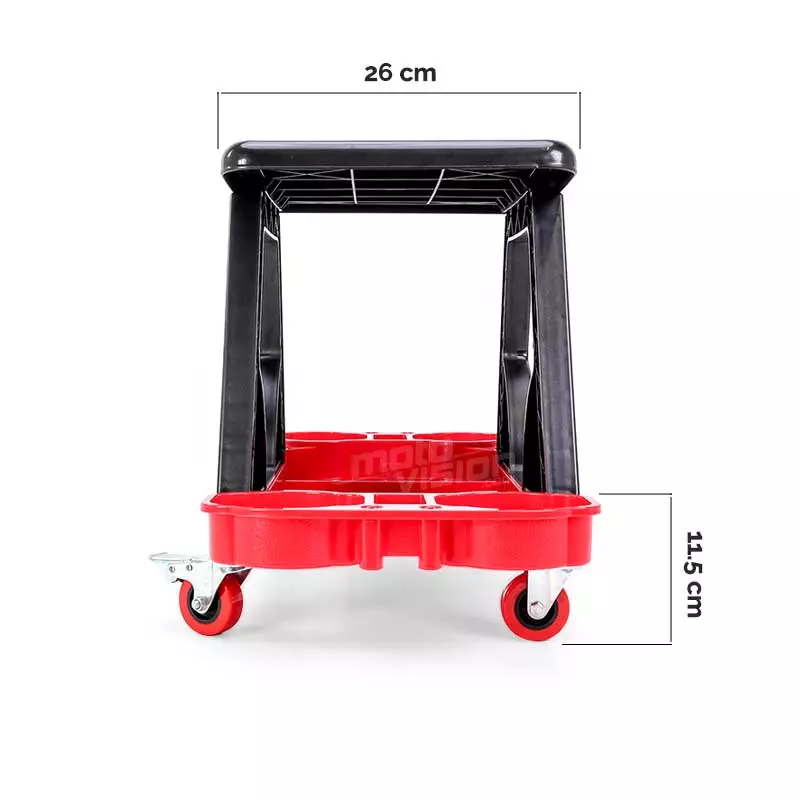 Rendi il tuo lavoro sulla tua moto più confortevole con questo sgabello su ruote e il suo contenitore per le tue piccole parti.
