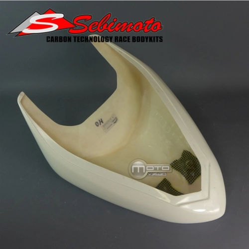 Scafo monoposto piste Sebimoto Kawasaki ZX10 R 2006 - 2007 in fibra di vetro intrecciata con rinforzi in kevlar, per mantenere la vostra sella originale. Il prodotto si monta facilmente sulla moto grazie alla marcatura dei punti di foratura e alla buona finitura della carenatura.