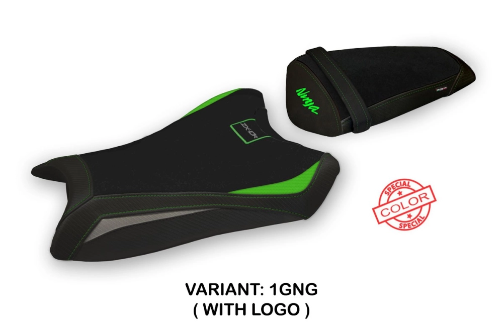Il rivestimento sella Tappezzeria KAWASAKI NINJA ZX 10 R 2011-2015 con logo vi permette di cambiare facilmente il look della vostra sella originale della moto. Ha le caratteristiche tecniche essenziali per un coprisella da moto di qualità: impermeabile e resistente al sole, cuciture doppie rinforzate e alta resistenza agli agenti chimici.