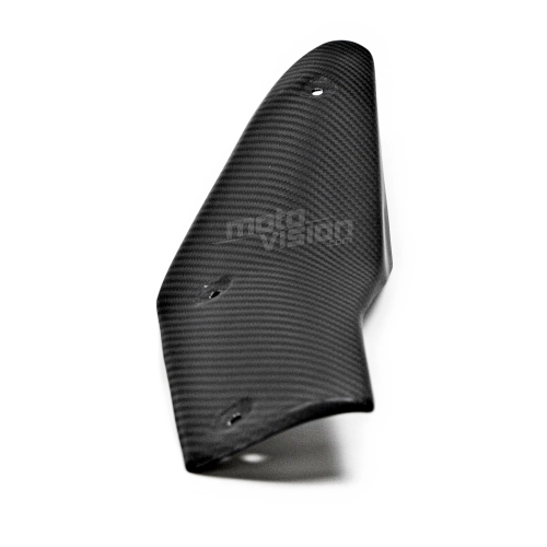 Protector colector escape en carbono KTM Superduke 1290 2017+ da montare direttamente sui punti di fissaggio originali della moto per sostituire la carenatura originale. Le parti in carbonio vengono fornite senza viti e bulloni.