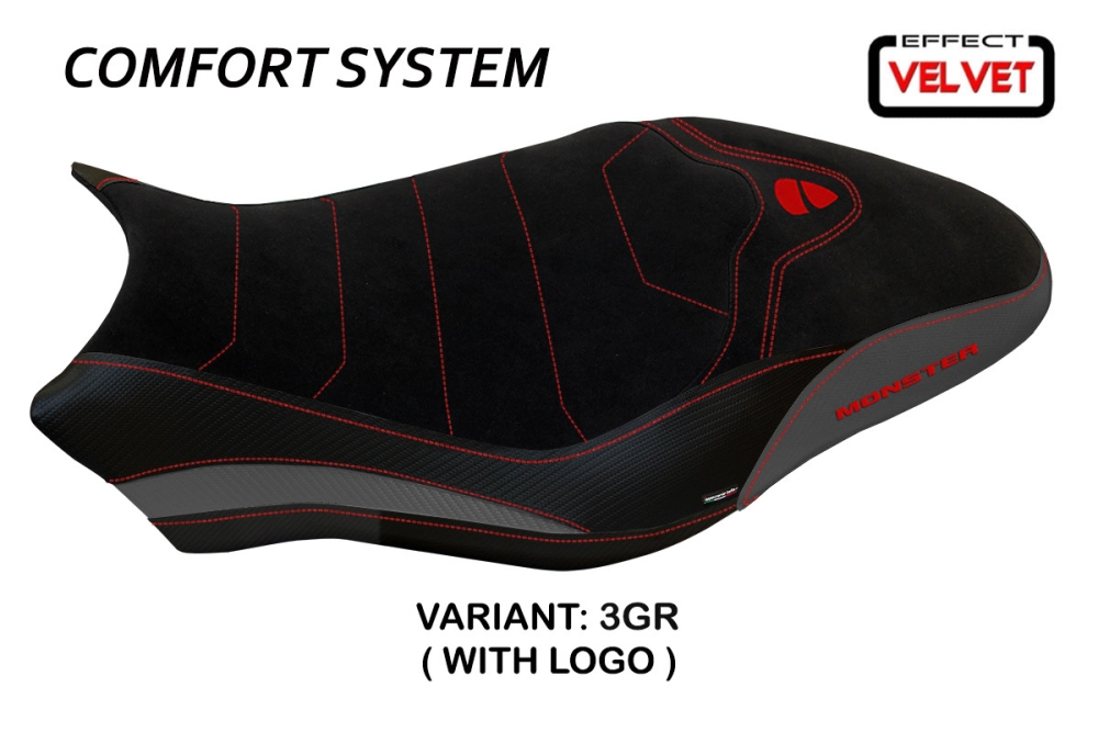 Rivestimento sella compatibile Ducati Monster 821 / 1200 (17-20) modello Ovada 1 Velvet comfort system