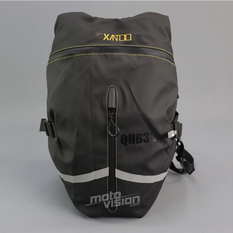 Dimensioni dello zaino da motociclista: altezza 55 cm, larghezza 25 cm, lunghezza 36 cm.