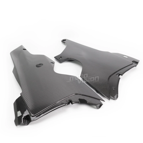 Carenado inferior de carbono brillante Kawasaki ZX10R 2021- da montare direttamente sui punti di fissaggio originali della moto per sostituire la carenatura originale. Le parti in carbonio vengono fornite senza viti e bulloni.