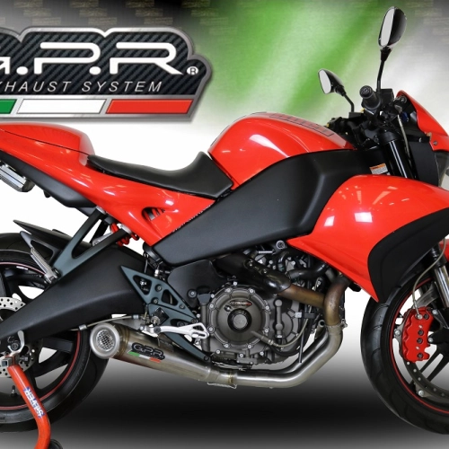 Specializzato in titanio e acciaio, il marchio italiano GPR Exhaust System può equipaggiare la tua Buell 1125 R -CR 2005 - 2009 con il Powercone Evo, un sistema di scarico medio-completo omologato che include DB Killer rimovibile.
