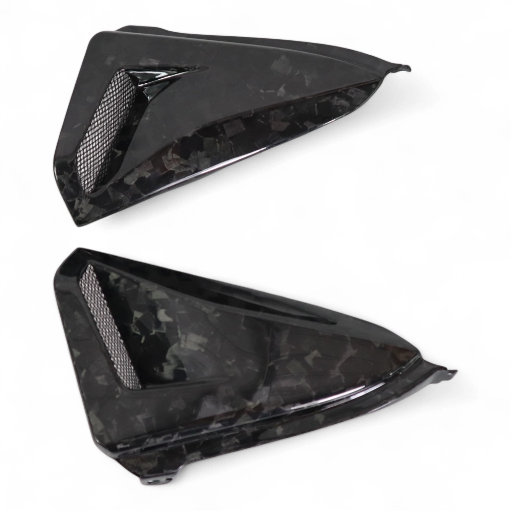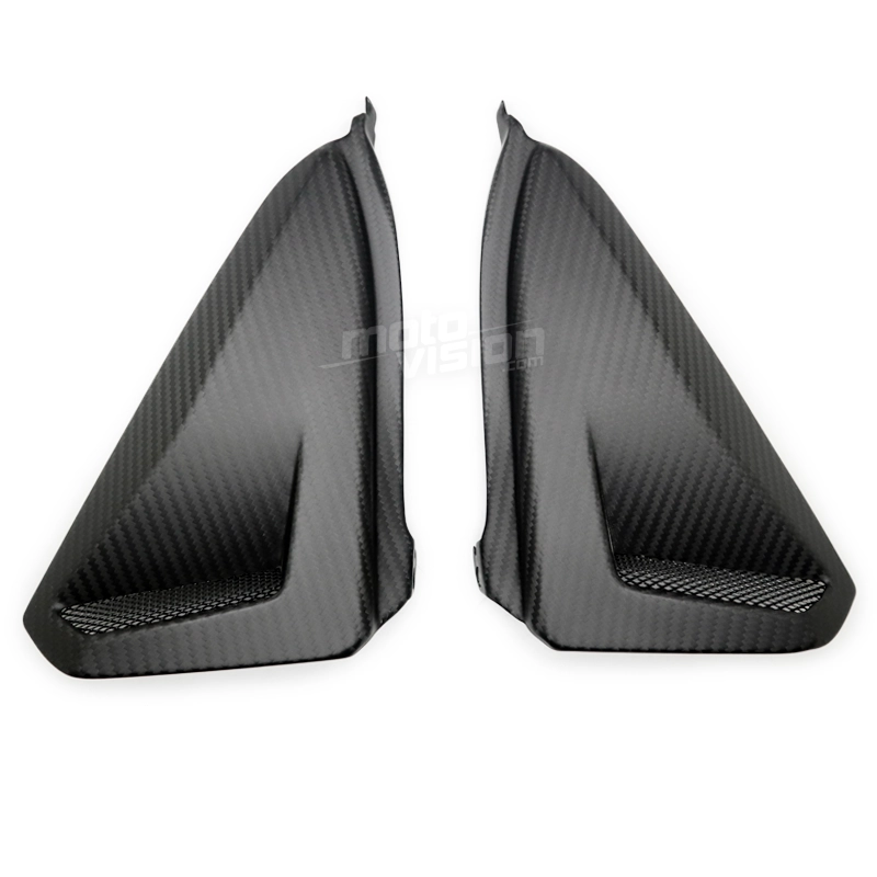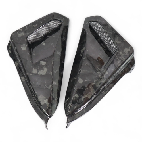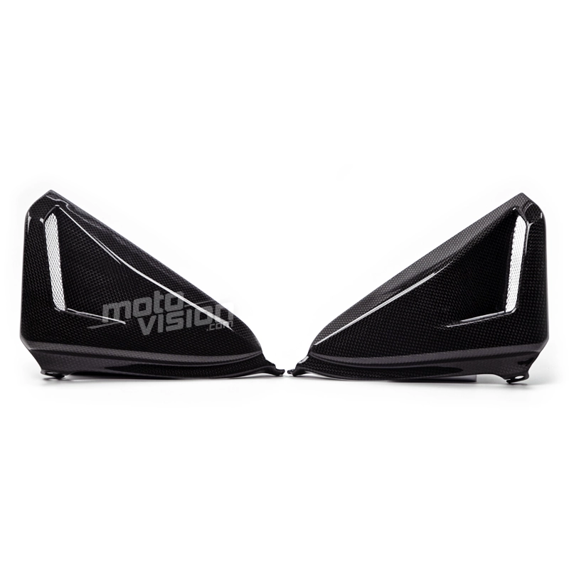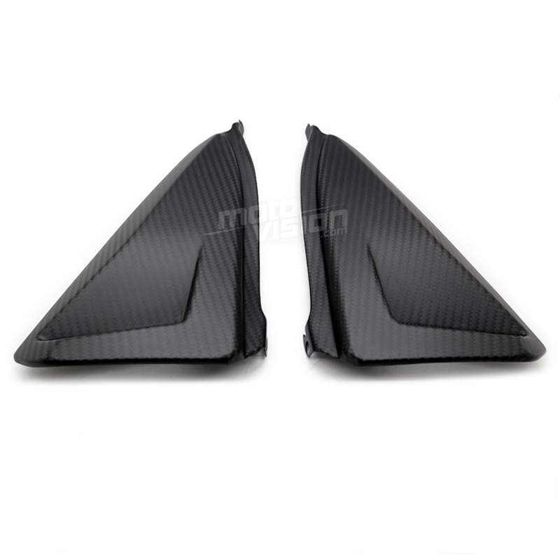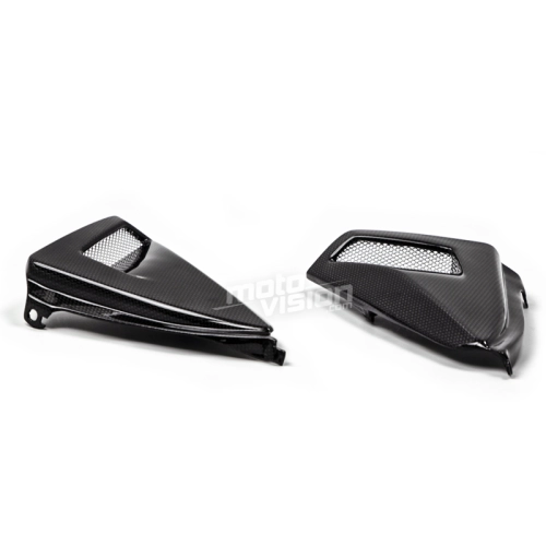 Carenados laterales superiores en carbono Honda CB1000 R 2008-2017 da montare direttamente sui punti di fissaggio originali della moto per sostituire la carenatura originale. Le parti in carbonio vengono fornite senza viti e bulloni.
