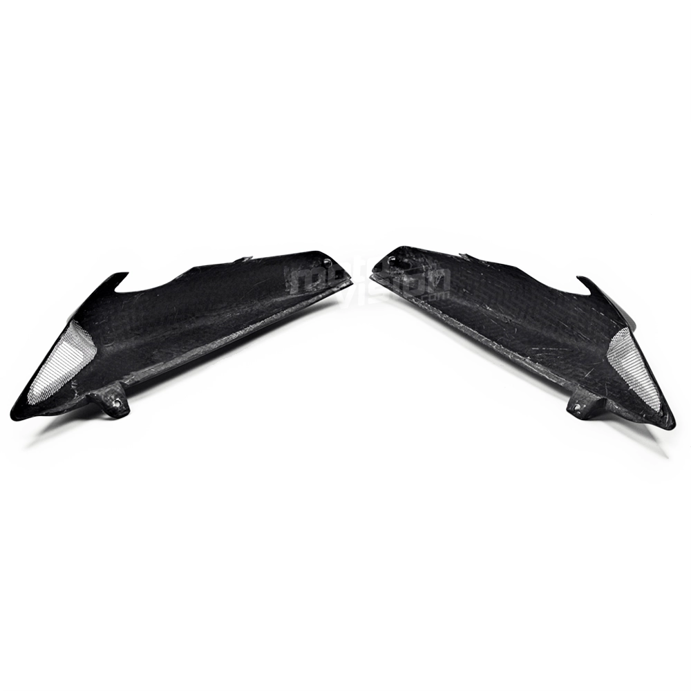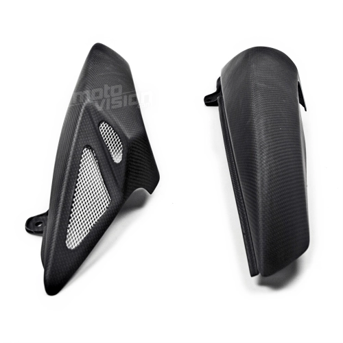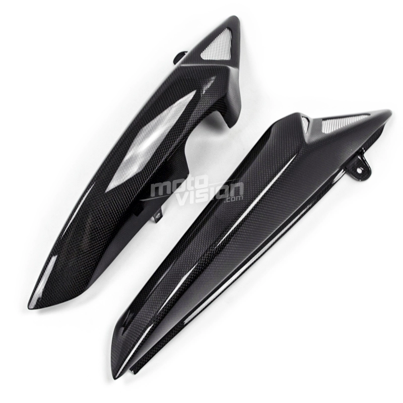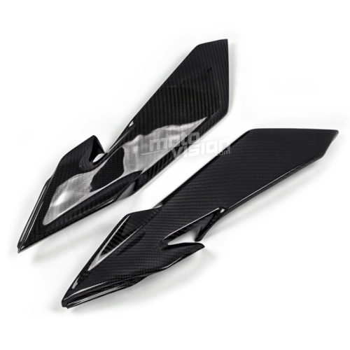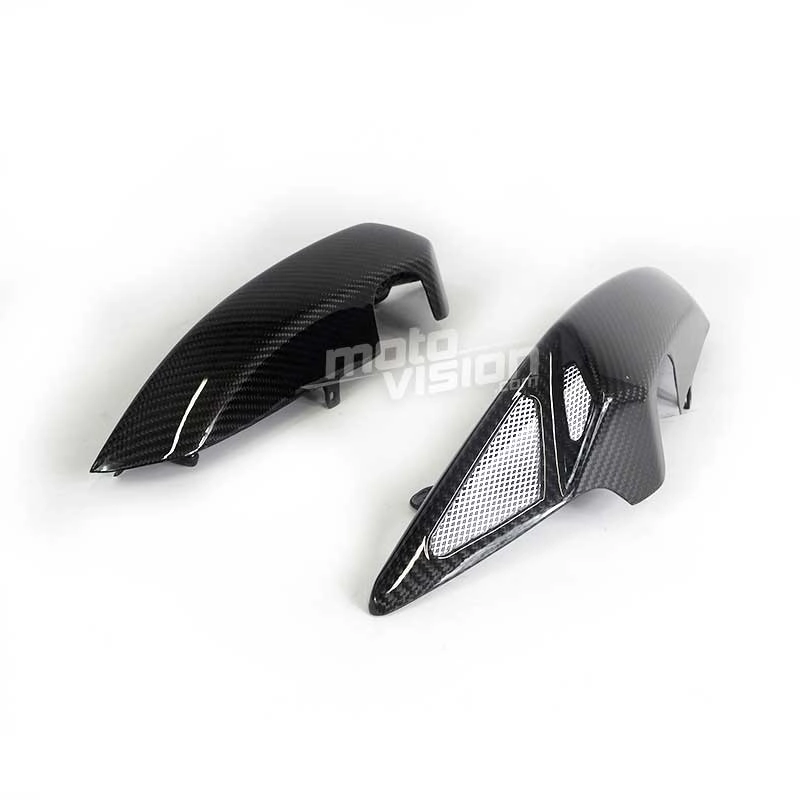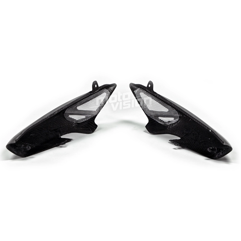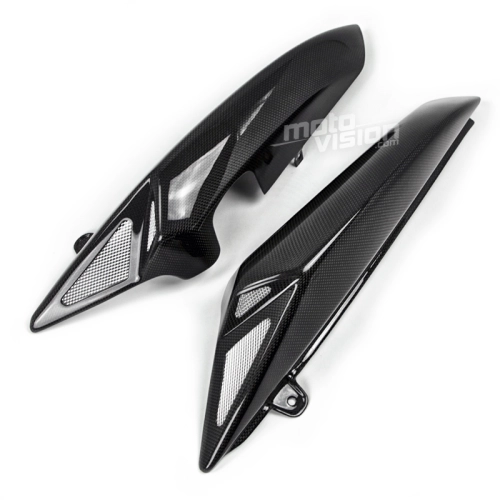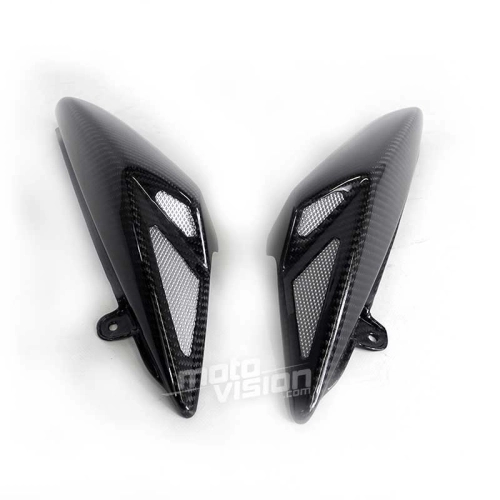 Carenados laterales superiores carbono Triumph Speed Triple 1050 da montare direttamente sui punti di fissaggio originali della moto per sostituire la carenatura originale. Le parti in carbonio vengono fornite senza viti e bulloni.