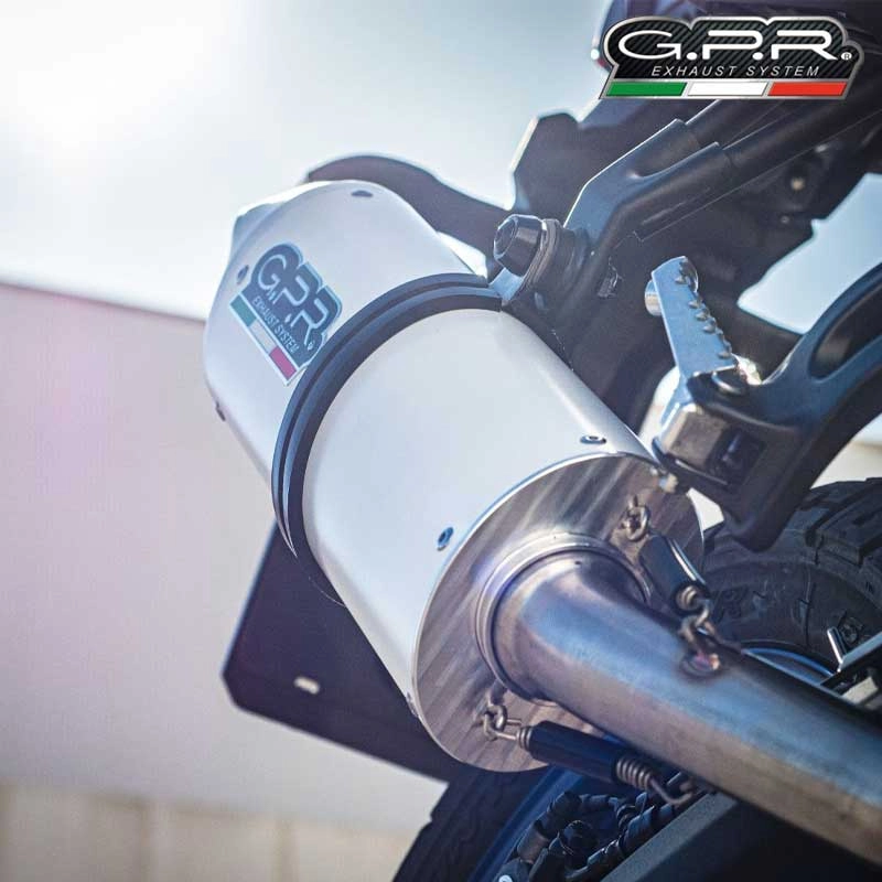 La serie di silenziatori ALBUS di GPR ha un corpo in alluminio e tappi in Avional lavorati a CNC. Lo scarico ha un trattamento ceramico, resistente alle alte temperature. Ha una forma ellittica con misure di 90 x 120 MM.ALBUS SILENCER GPR fornisce un collettore in acciaio inox 304 comprensivo di catalizzatore omologato. La confezione comprende flange, boccole, staffe. Si monta direttamente sulle bombole senza alcuna modifica strutturale. Si tratta di un prodotto originale GPR, sviluppato dopo l'esperienza GPR nel Campionato del Mondo. Offre un design innovativo, prestazioni migliorate, risparmio di peso e un suono corposo.