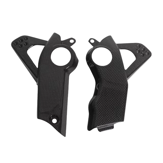 Rifiniture laterali carbonio Ducati DesertX 2022- consegnato senza viti o altri fissaggi. I fori sono già praticati sulle carenature per moto in carbonio. I pezzi sono disponibili con vernice lucida o opaca.