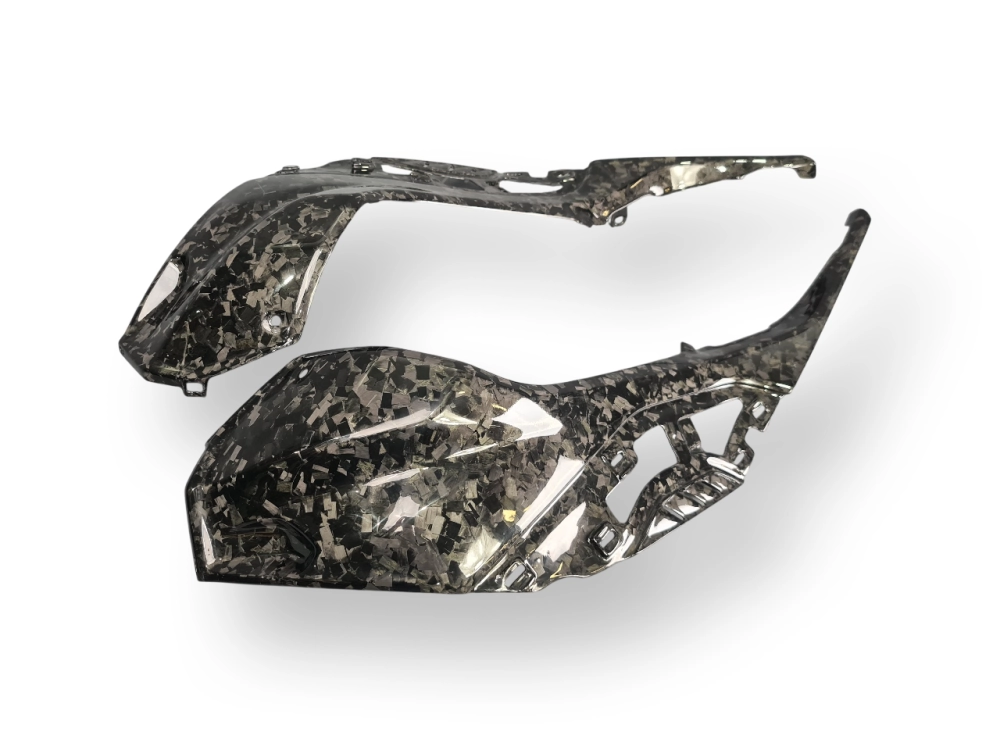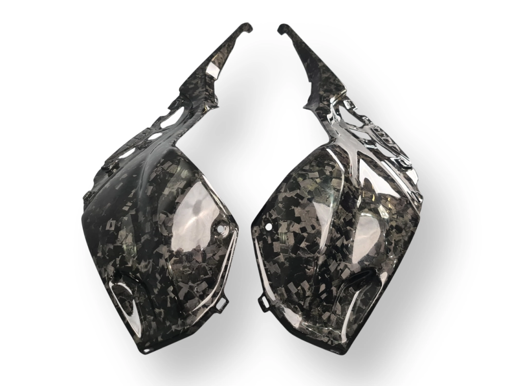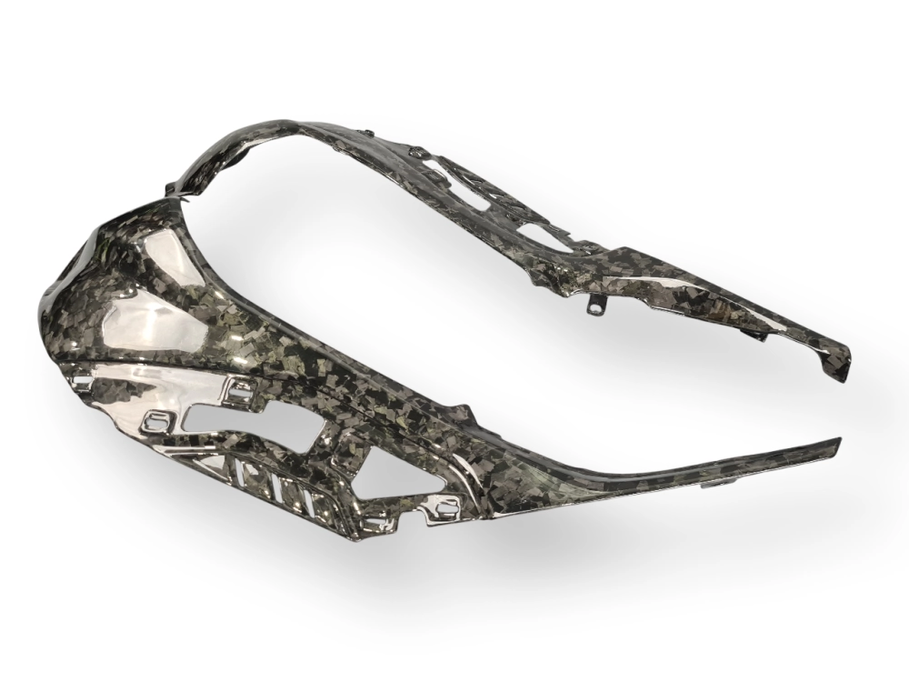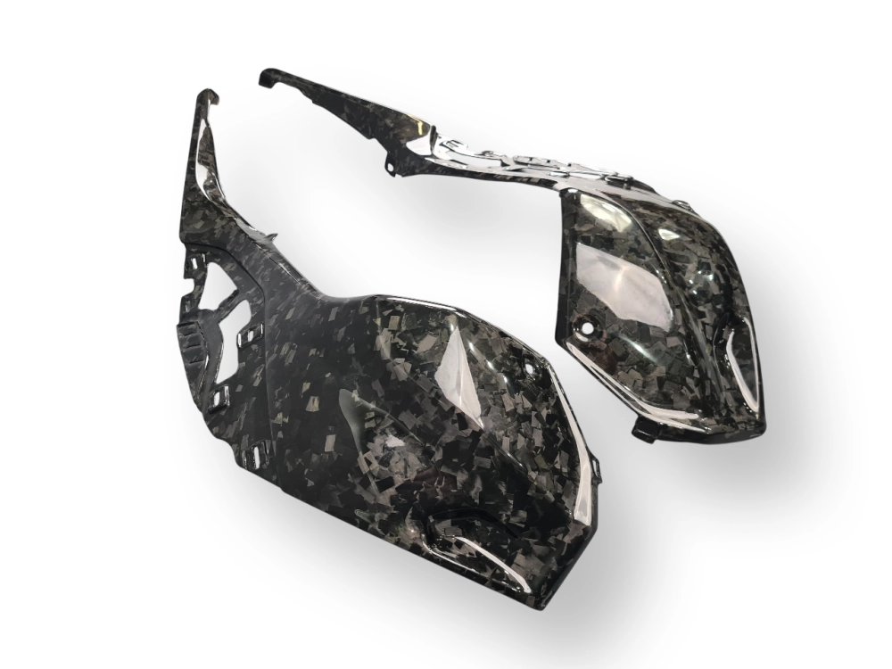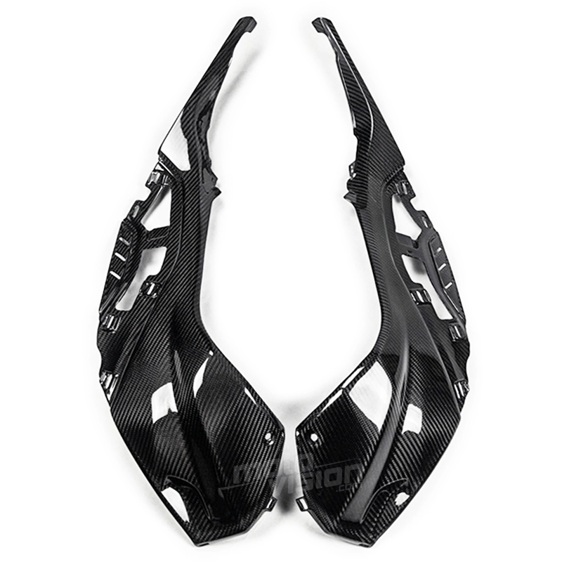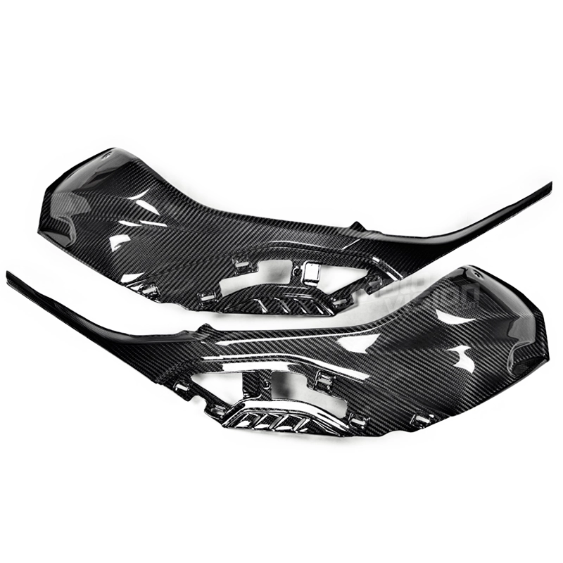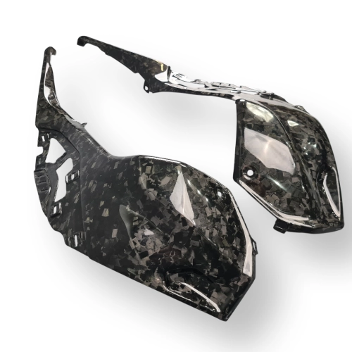 Copri Serbatoio en carbonio per BMW S1000RR 2019- S1000R 2021- M1000R 2023- M1000RR 2023- que se monta directamente en los puntos de fijación originales de su moto para sustituir el carenado original. Las piezas de carbono se entregan sin tornillos ni pernos.
