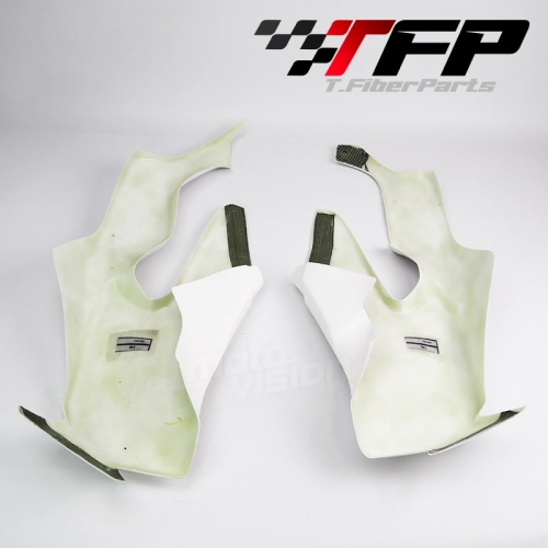 Carenatura anteriore in poliestere TFP Kawasaki ZX10R 2021- con due strati di fibra di vetro e finitura intrecciata. Un poli moto ideale al posto della carenatura originale per equipaggiare la vostra moto per la pista al miglior prezzo. La carenatura TFP è dotata di rinforzi in Kevlar nei punti di giunzione e di fissaggio. Fornito senza kit di fissaggio.