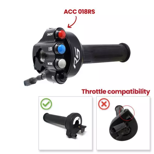 Il montaggio è progettato in modo da non richiedere alcuna modifica elettronica. Questo blocchetto consente inoltre di trasformare la vostra moto in una Supersport grazie a un comando gas rapido aggiungendo la manopola acceleratore.