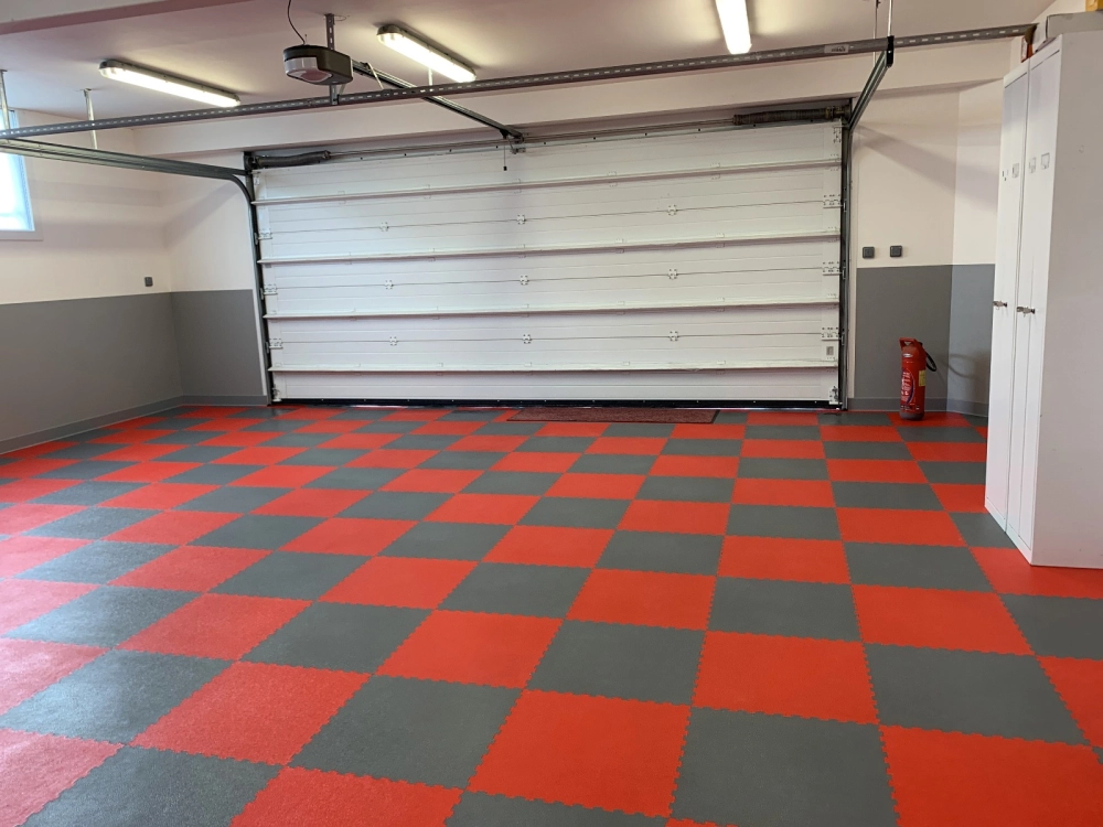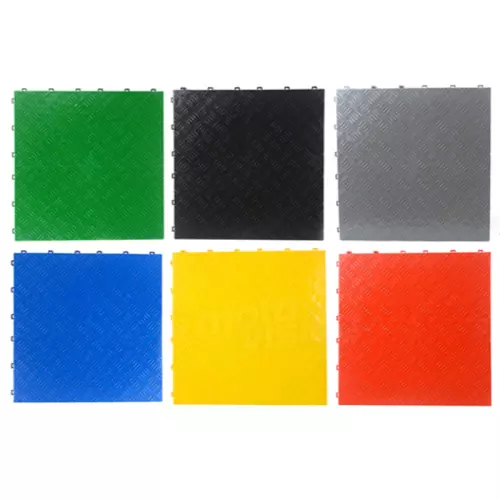 Proteggete il pavimento del vostro garage o della vostra officina con queste piastrelle in PVC ad incastro. Le clip le rendono facili da montare, senza bisogno di colla o viti aggiuntive.