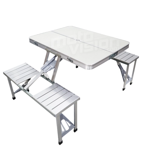 Sedetevi e rilassatevi attorno a questo tavolo da picnic per 4 persone. È un ottimo accessorio, ma soprattutto è pratico per i vostri viaggi perché è facile da trasportare e occupa poco spazio nel vostro veicolo.