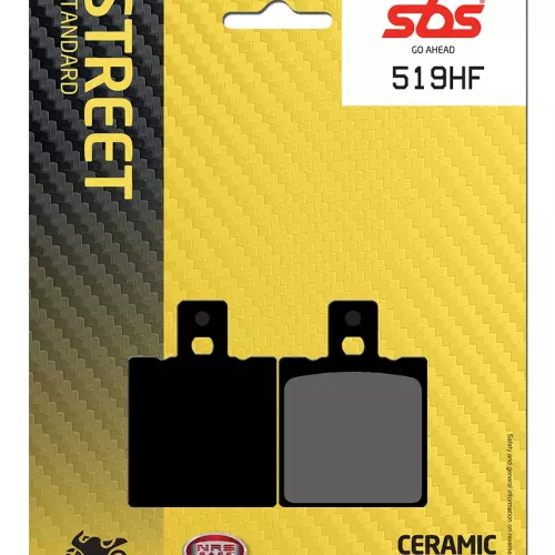 Pastiglie dei freni SBS 519HF della gamma Street Organique, ideali per sostituire le pastiglie originali e garantire una frenata stabile, un elevato livello di comfort, una lunga durata e una protezione del disco in condizioni di bagnato e asciutto per moto e scooter.