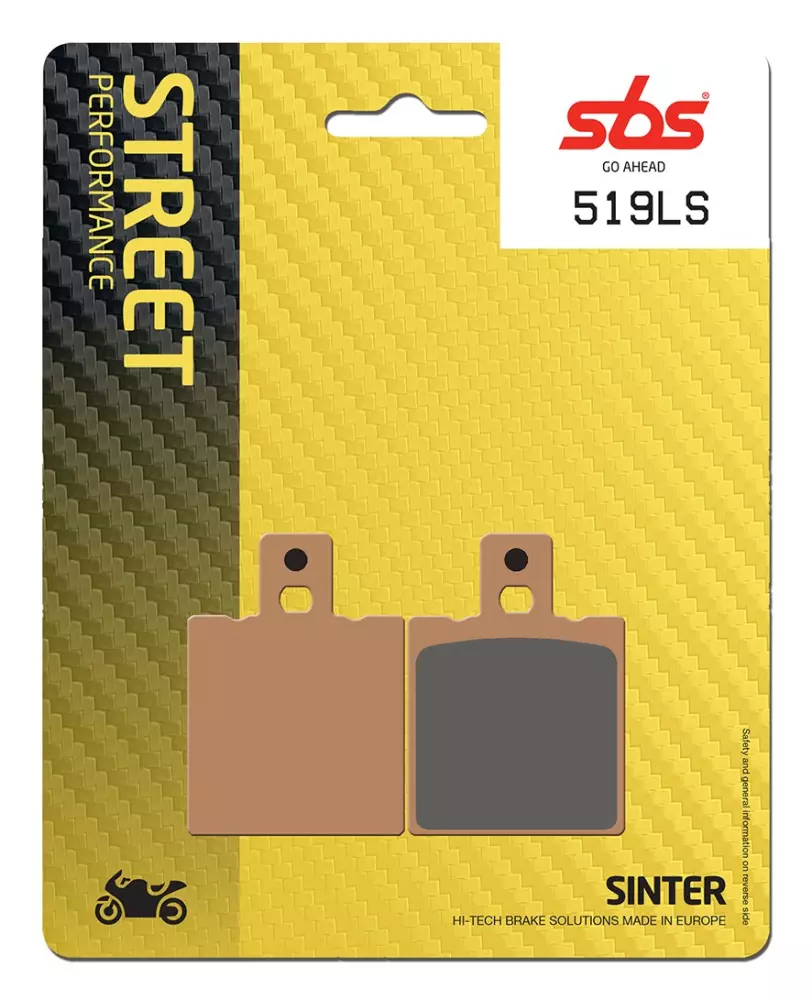Pastiglie dei freni SBS 519 (LS) della gamma Street Sinter - Metallo sinterizzato posteriore. Le pastiglie non danneggiano il disco, le loro prestazioni rimangono stabili sia sul bagnato che sull'asciutto e non richiedono un rodaggio termico. In combinazione con la guarnizione HS del freno anteriore, forniscono la potenza di frenata necessaria e attesa.