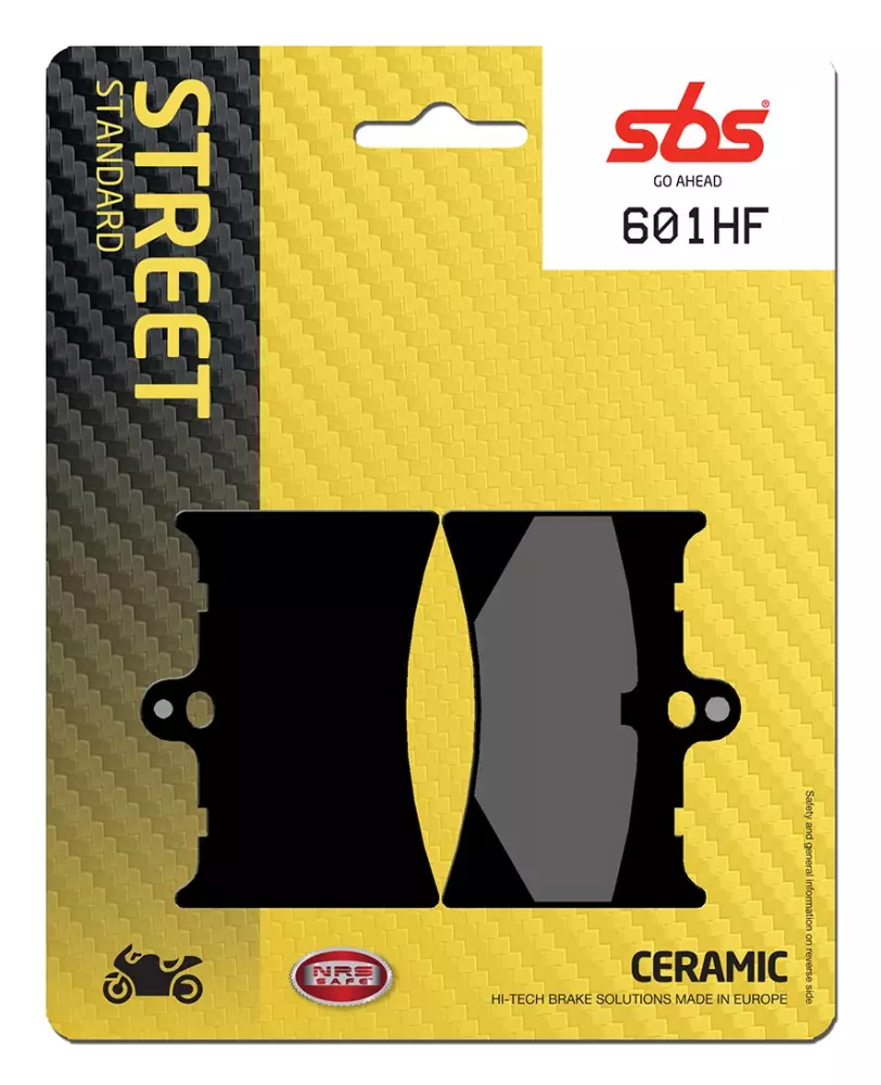 Pastiglie dei freni SBS 601HF della gamma Street Organique, ideali per sostituire le pastiglie originali e garantire una frenata stabile, un elevato livello di comfort, una lunga durata e una protezione del disco in condizioni di bagnato e asciutto per moto e scooter.