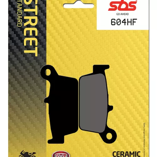 Pastiglie dei freni SBS 604HF della gamma Street Organique, ideali per sostituire le pastiglie originali e garantire una frenata stabile, un elevato livello di comfort, una lunga durata e una protezione del disco in condizioni di bagnato e asciutto per moto e scooter.