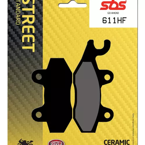 Pastiglie dei freni SBS 611HF della gamma Street Organique, ideali per sostituire le pastiglie originali e garantire una frenata stabile, un elevato livello di comfort, una lunga durata e una protezione del disco in condizioni di bagnato e asciutto per moto e scooter.