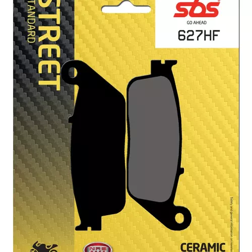 Pastiglie dei freni SBS 627HF della gamma Street Organique, ideali per sostituire le pastiglie originali e garantire una frenata stabile, un elevato livello di comfort, una lunga durata e una protezione del disco in condizioni di bagnato e asciutto per moto e scooter.