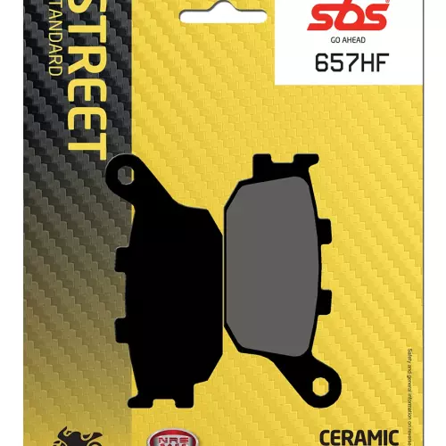 Pastiglie dei freni SBS 657HF della gamma Street Organique, ideali per sostituire le pastiglie originali e garantire una frenata stabile, un elevato livello di comfort, una lunga durata e una protezione del disco in condizioni di bagnato e asciutto per moto e scooter.